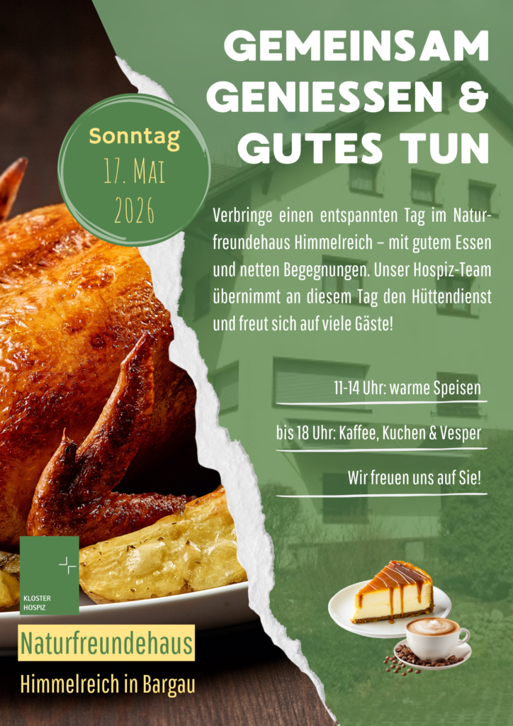 Das Hospiz-Team übernimmt am Sonntag, 17. Mai einen Hüttendienst im Naturfreundehaus Himmelreich in Bargau und freut sich über zahlreiche Gäste!